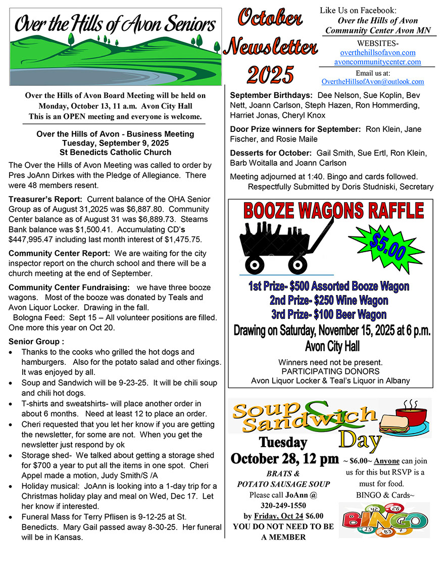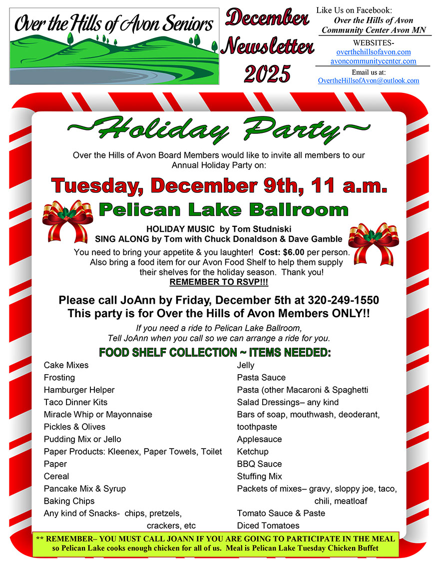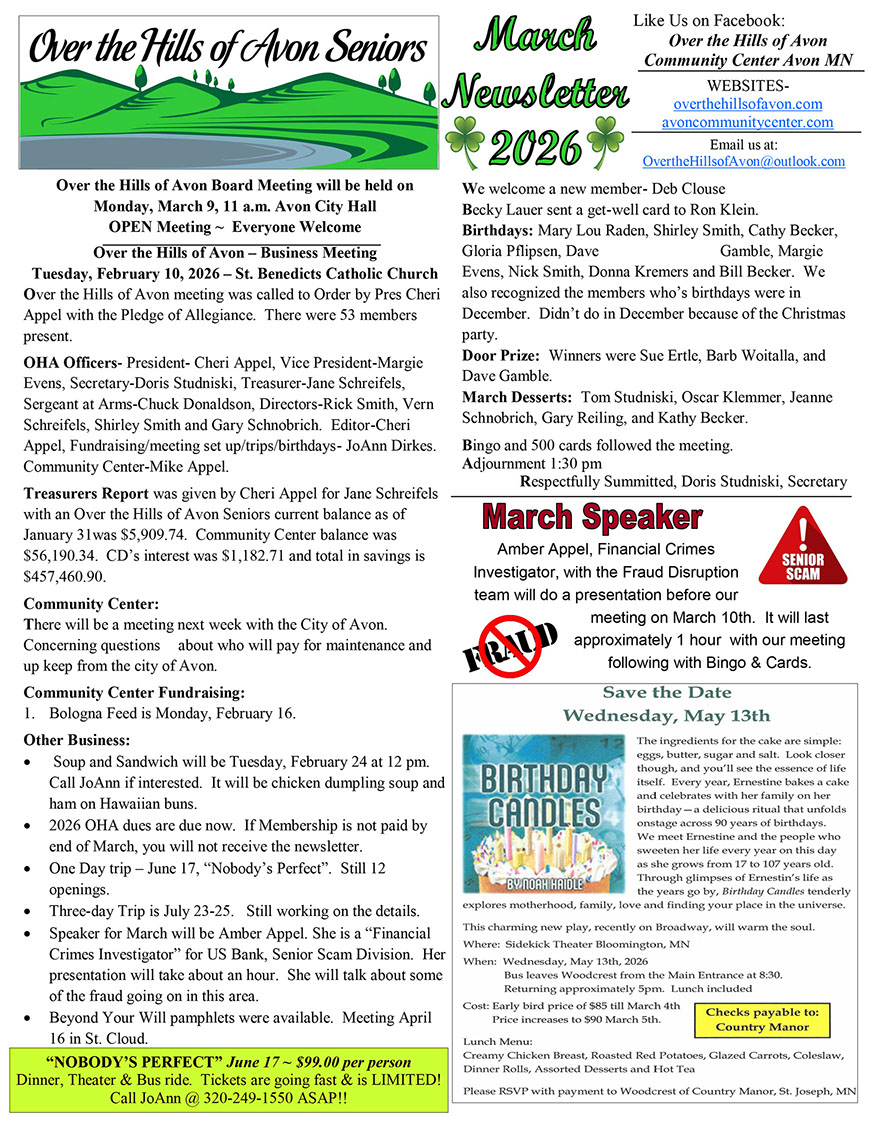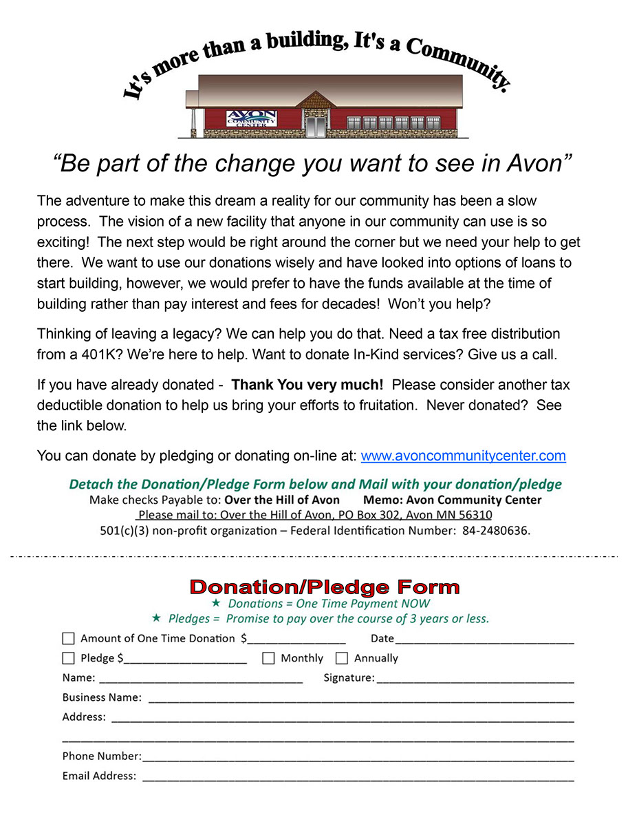 Follow us on Facebook: Over the Hills of Avon Community Center