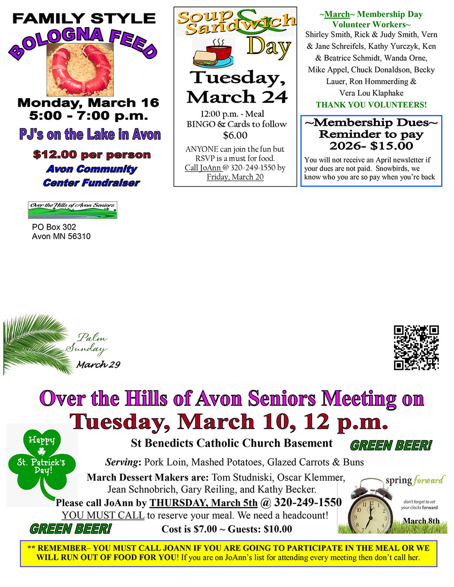 [Send dues to PO Box 302, Avon, MN 56310]