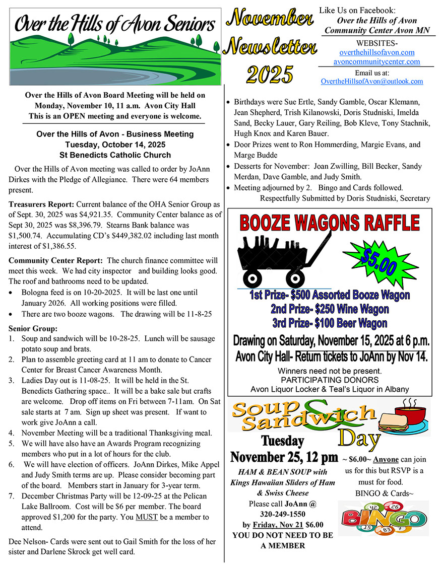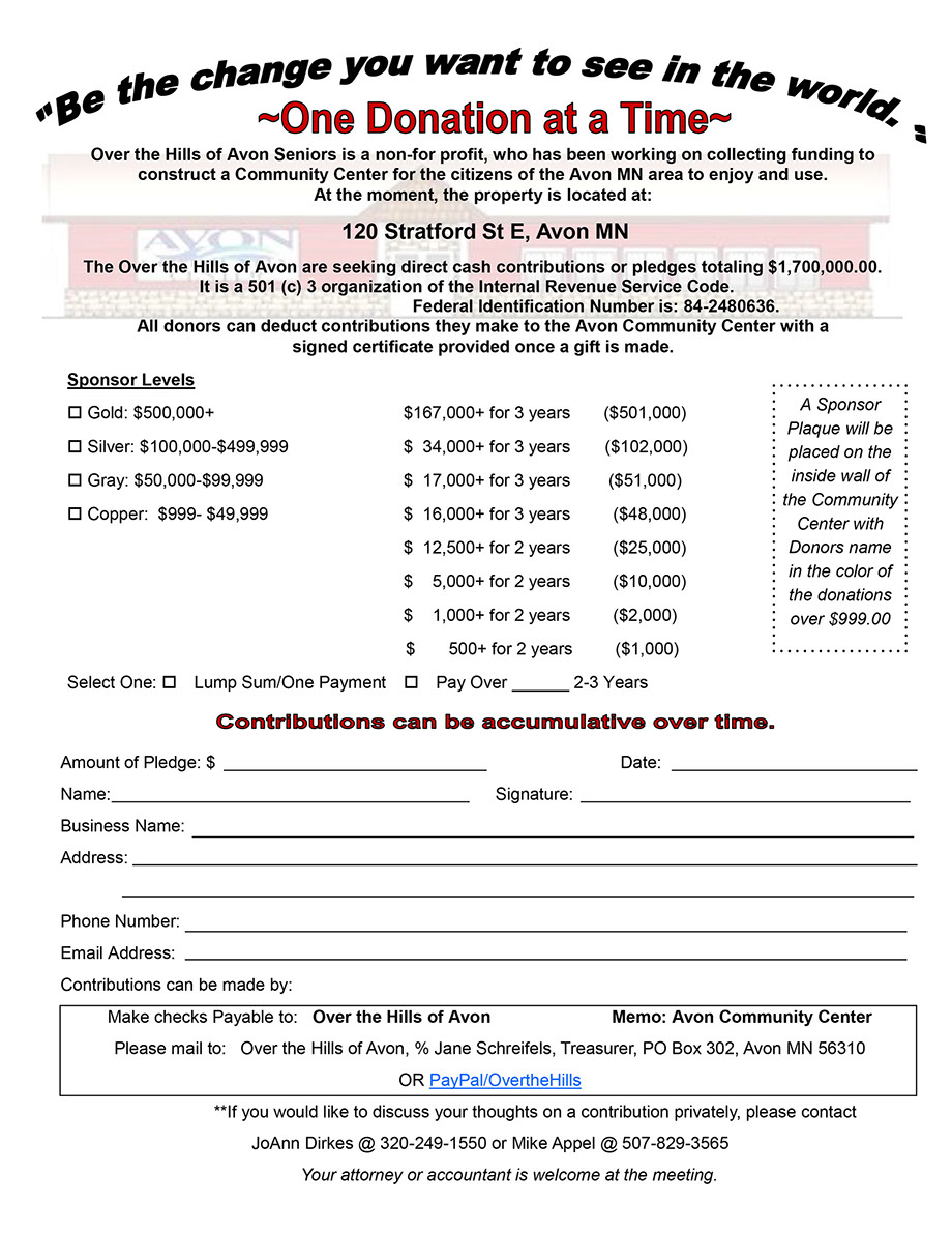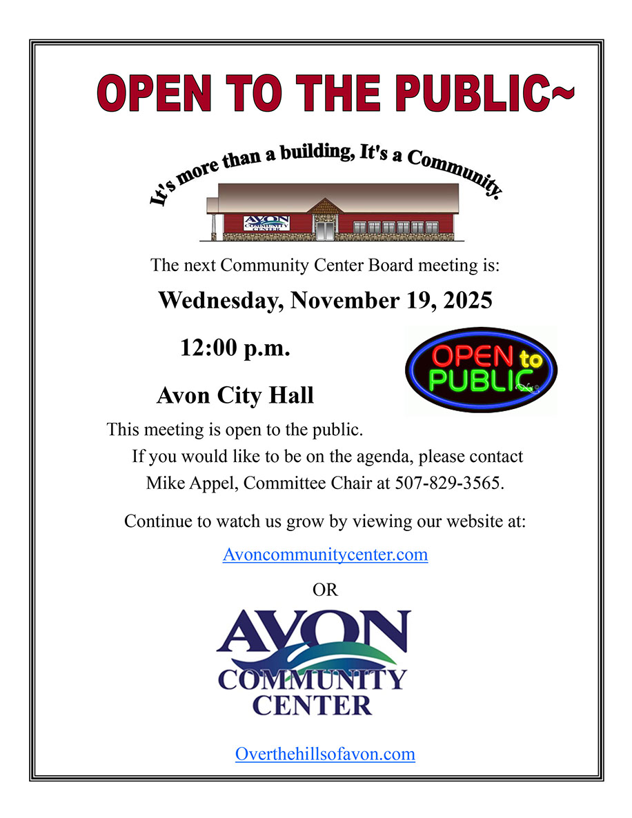 Follow us on Facebook: Over the Hills of Avon Community Center