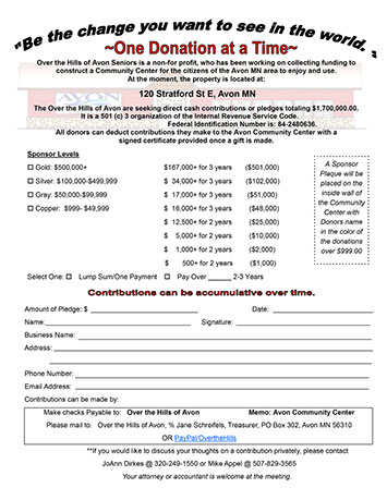 Follow us on Facebook: Over the Hills of Avon Community Center